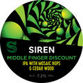 It's throwback time, as we delve into the recipe archives for one of our favourite beers. Middle Finger Discount is a 100% Mosaic IPA, spun on cedar wood through our SpinBot. Expect a bright spiciness from the wood, with all kinds of dank, deep tropical fruit notes that will rob your taste buds blind.
