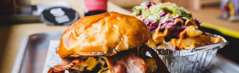 O.P.M. hit Birmingham’s up-and-coming street food scene with a background in design and no professional experience in the kitchen – just a love of a great burger. Their dedication to the perfect patty, along with a delicious bun and their simple and inventive branding, have earned them a cult following. Not least for their notorious Krispy Kreme burger, now known as ‘Big Verns Krispy Ring’ (a doughnut bun and patty topped with maple bacon, American cheese, ketchup & mustard).